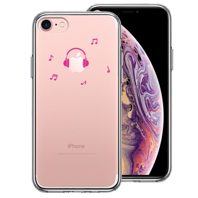 iPhone8 ケース クリア 音楽 music ヘッドフォン ヘッドホン ピンク スマホケース 側面ソフト 背面ハード ハイブリッド