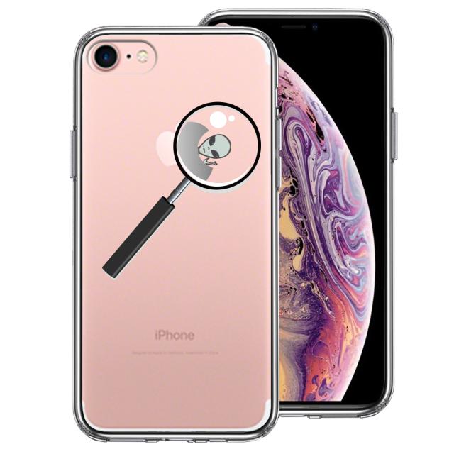 iPhone8 ケース クリア 宇宙人 りんごの後ろに スマホケース 側面ソフト 背面ハード ハイブリッド