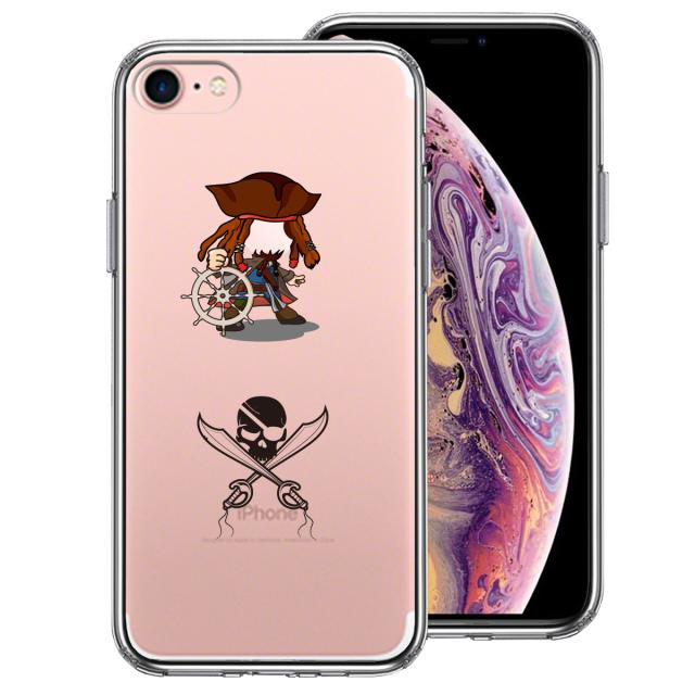 iPhone8 ケース クリア 海賊 帆船 スカル スマホケース 側面ソフト 背面ハード ハイブリッド