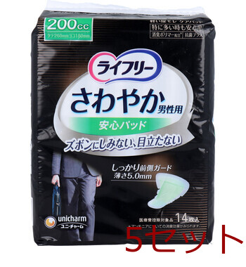 ライフリー さわやか男性用安心パッド 200cc 特に多い時も安心用 14枚入 5セット 送料無料