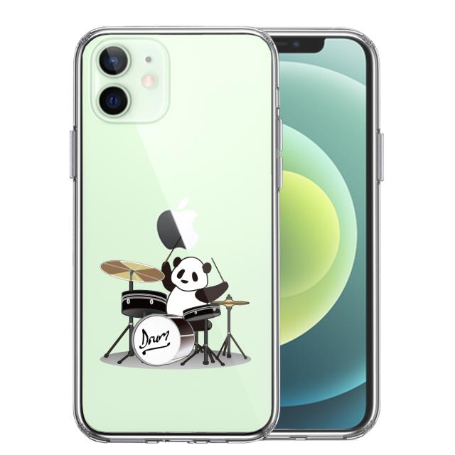 iPhone12mini ケース クリア ドラム パンダ スマホケース 側面ソフト 背面ハード ハイブリッド