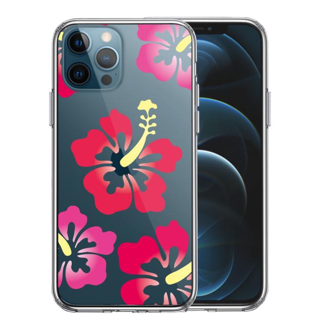 iPhone12Pro ケース クリア ハイビスカス レッド