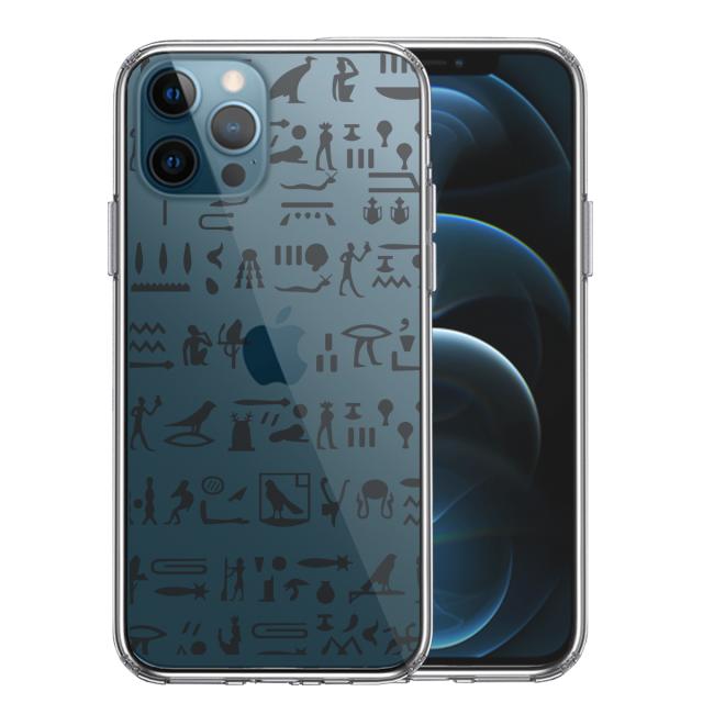 iPhone12Pro ケース クリア ヒエログリフ 象形文字 黒 スマホケース 側面ソフト 背面ハード ハイブリッド 送料無料