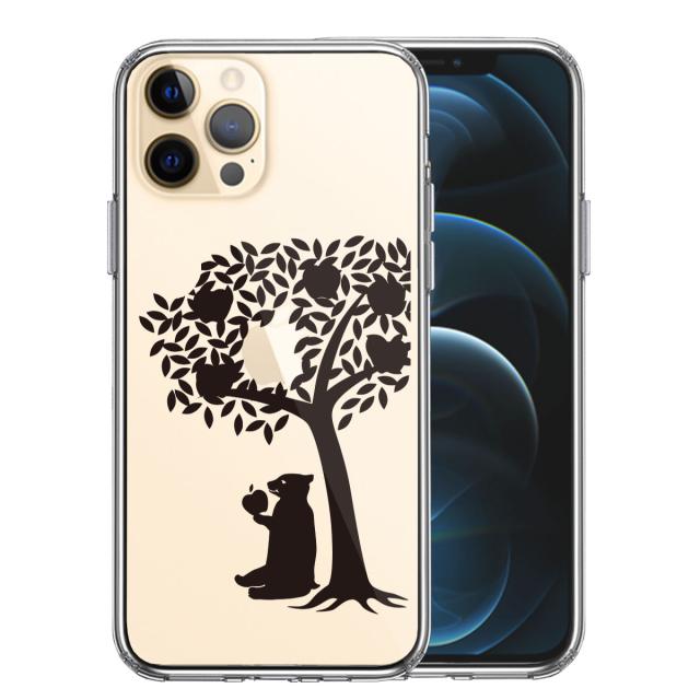 iPhone12Pro ケース クリア リンゴ食べるクマ スマホケース 側面ソフト 背面ハード ハイブリッド 送料無料