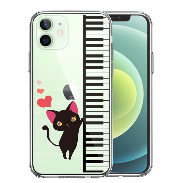 iPhone12mini ケース クリア ピアノ 3 猫ふんじゃった ハート スマホケース 側面ソフト 背面ハード ハイブリッド