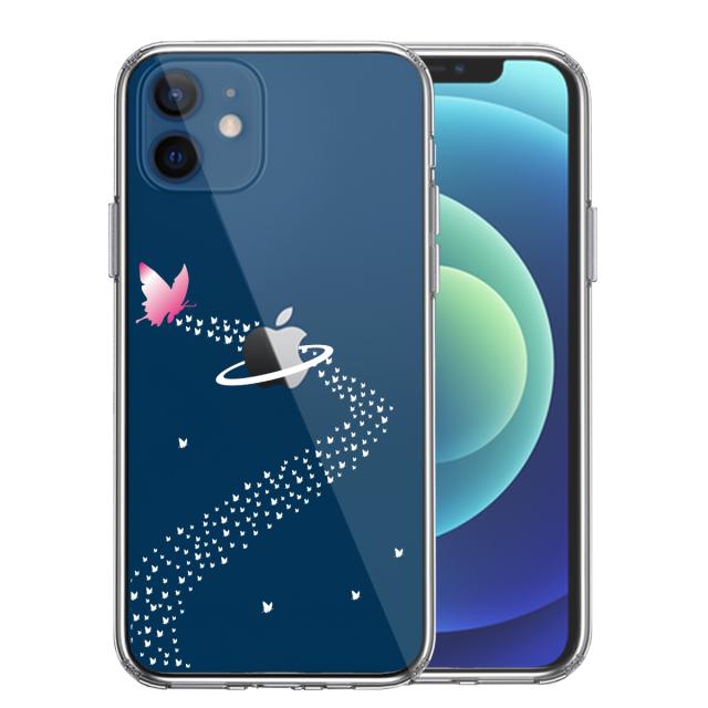 iPhone12mini ケース クリア 蝶 チョウ 蝶々 天の川 スマホケース 側面ソフト 背面ハード ハイブリッド 送料無料
