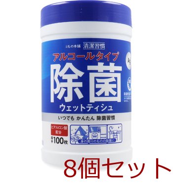 清潔習慣 アルコールタイプ 除菌ウェットティシュ ボトル本体 100枚入 8セット 送料無料