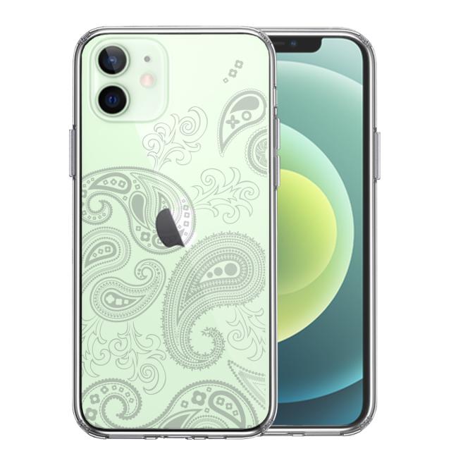 iPhone12mini ケース クリア ペイズリー 柄 ライトグレイ スマホケース 側面ソフト 背面ハード ハイブリッド