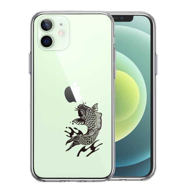 iPhone12 ケース クリア 黒鯉 スマホケース 側面ソ