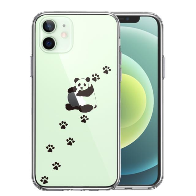 iPhone12mini ケース クリア パンダ リンゴ大好き スマホケース 側面ソフト 背面ハード ハイブリッド 送料無料