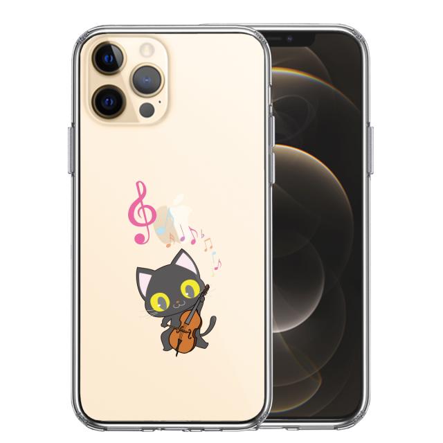 iPhone12Pro ケース クリア チェロ ねこ スマホケース 側面ソフト 背面ハード ハイブリッド 送料無料