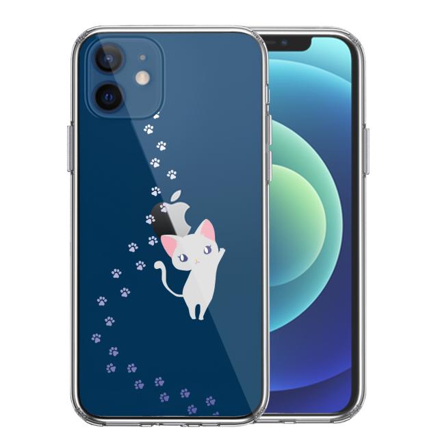 iPhone12mini ケース クリア ジャケット ねこ フットプリント スマホケース 側面ソフト 背面ハード ハイブリッド 送料無料