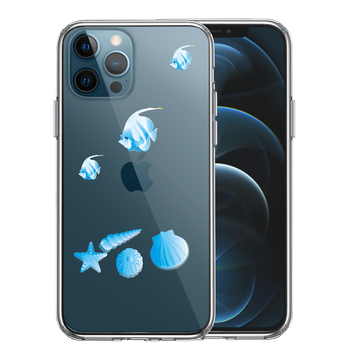 iPhone12Pro ケース クリア 夏 熱帯魚 と 貝 ブルー スマホケース 側面ソフト 背面ハード ハイブリッド 送料無料