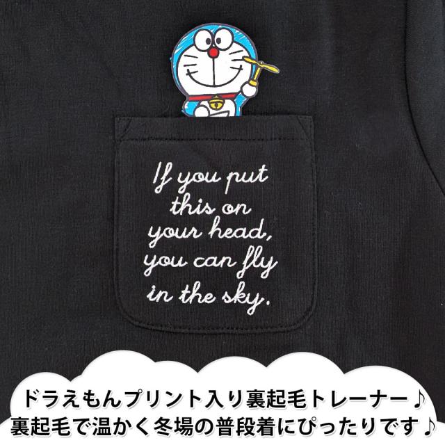 胸ポケットにドラえもんプリント入り裏起毛トレーナー