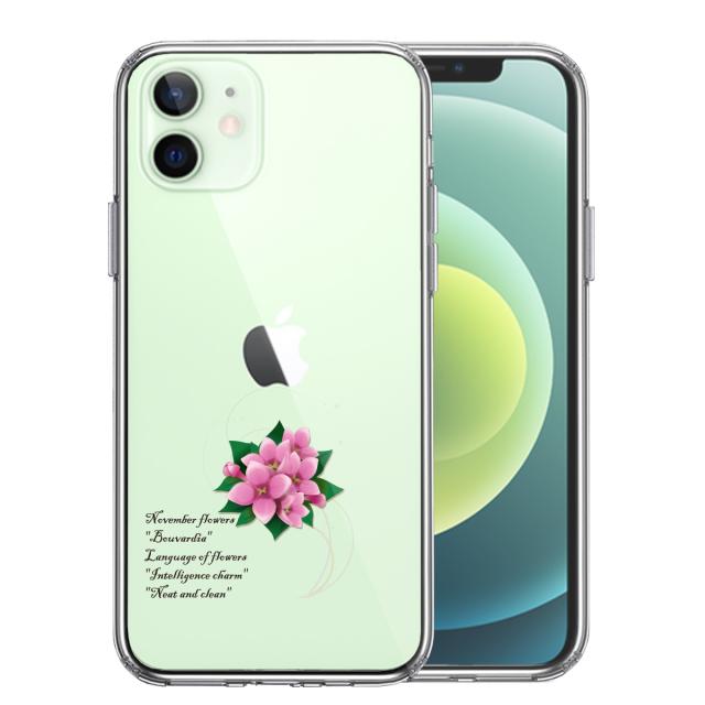 iPhone12mini ケース クリア 一輪花 11月 ブバルディア スマホケース 側面ソフト 背面ハード ハイブリッド