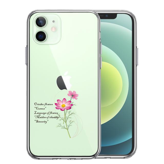 iPhone12mini ケース クリア 一輪花 10月 コスモス スマホケース 側面ソフト 背面ハード ハイブリッド