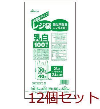 FI-4 レジ袋 40号 乳白 0.016×400×500mm 100枚入 12セット 送料無料