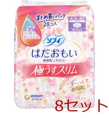 ソフィ はだおもい 極うすスリム 特に多い昼用 羽つき 26cm 28個入 8セット 送料無料
