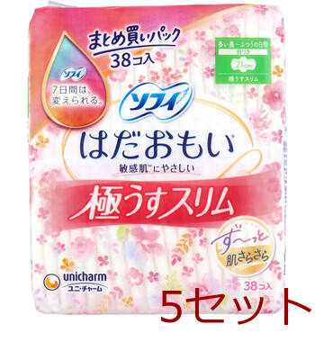 ソフィ はだおもい 極うすスリム 多い昼 ふつうの日 羽つき 21cm 38枚入 5セット 送料無料