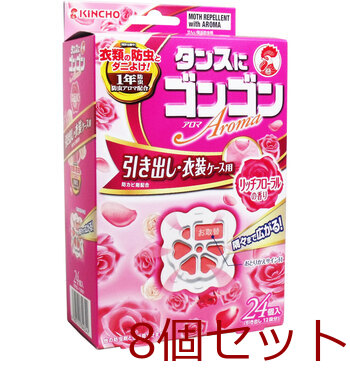 タンスにゴンゴン アロマ 引き出し・衣装ケース用 リッチフローラルの香り 1年防虫 24個入 8セット 送料無料
