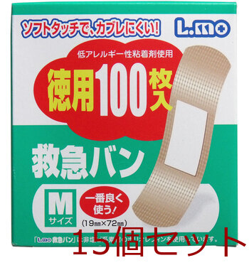 ソフトタッチで カブレにくい 救急バン Mサイズ 100枚入 15セット 送料無料