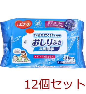ハビナース やぶれにくいタイプのおしりふき 大判厚手 大人用 40枚入 12セット 送料無料