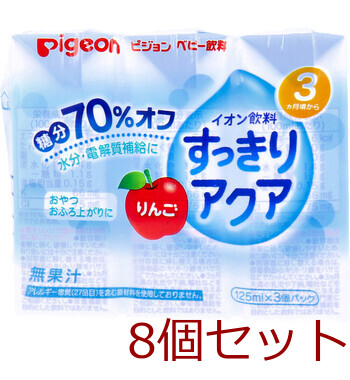ピジョン ベビー飲料 イオン飲料 すっきりアクア りんご 125mL×3個パック 8セット 送料無料
