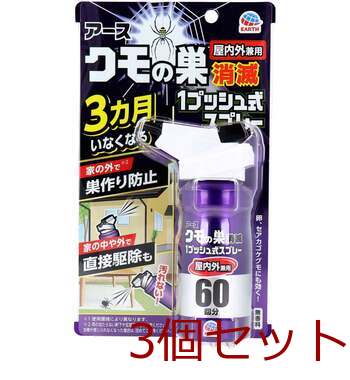 アース クモの巣消滅 1プッシュ式スプレー 屋内外兼用 60回分 80mL 3個セット 送料無料