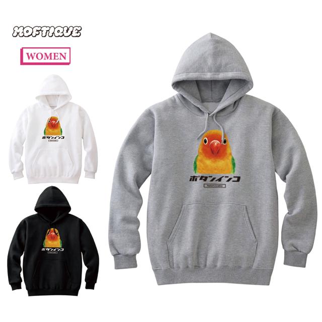 Moftique(モフティック) プルパーカー スウェット 裏毛 コザクラインコ 鳥 ペット アニマル プリント トップス レディース ユニセックス