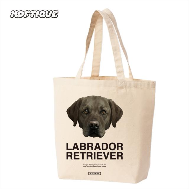 Moftique(モフティック) トートバッグ キャンバス マチ有 生成り ラブラドールレトリバー 犬 アニマルプリント Lサイズ
