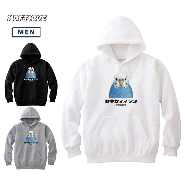 Moftique(モフティック) プルパーカー スウェット 裏毛 セキセイインコ 鳥 ペット アニマル プリント トップス メンズ ユニセックス