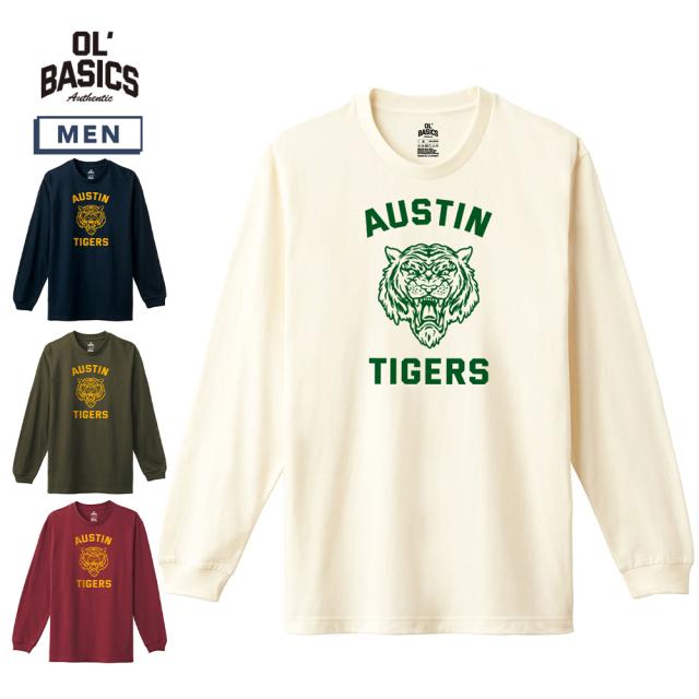 Ol' Basics(オール・ベーシックス) 長袖Tシャツ AUSTIN ロゴ タイガーイラスト プリント 袖リブ ロンT ロングTシャツ トップス カットソー メンズ ユニセックス