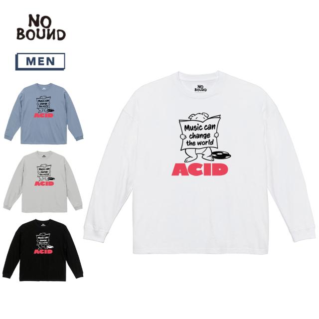 NOBOUND(ノーバウンド) 長袖Tシャツ メッセージ ロゴ ポップイラスト プリント ビッグシルエット ロンT トップス メンズ ユニセックス