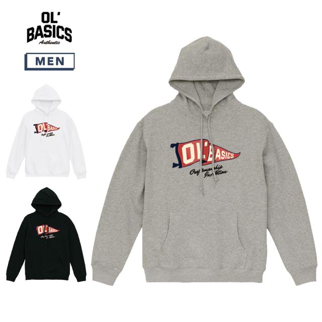 ・フロントにロゴと旗のイラストをプリントしたスエットパーカー