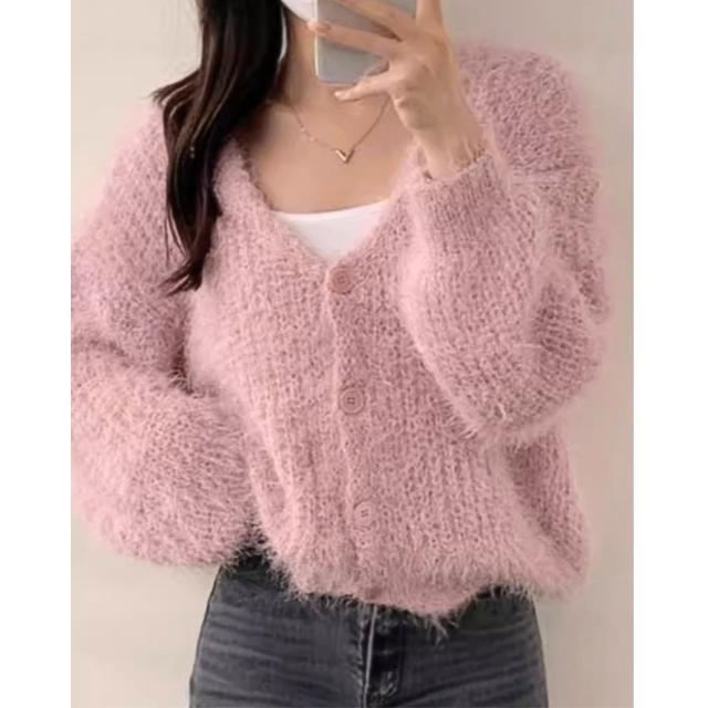 -ふわふわ質感で女性らしさアップのフェザーニットカーディガン