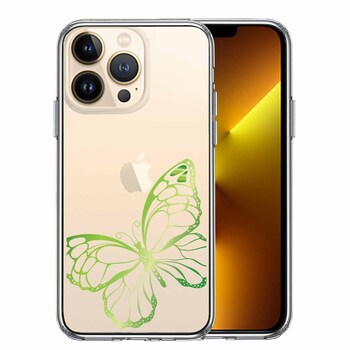 iPhone13 ケース クリア 蝶 ちょうちょう バタフライ ゴールド 2 スマホケース 側面ソフト 背面ハード ハイブリッド