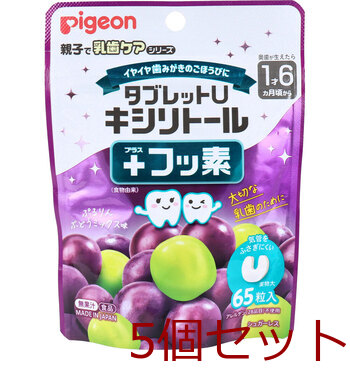 ピジョン 親子で乳歯ケア タブレットU キシリトール+フッ素 ぷるりんぶどうミックス味 65粒入 5セット 送料無料