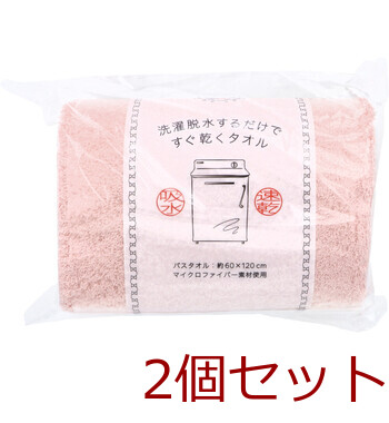 洗濯脱水するだけですぐ乾くタオル2 バスタオル 約60×120cm ライトピンク 1枚入 2セット 送料無料