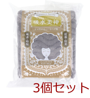 フワモコマルシェ 吸水美神 キュウスイビジン コンパクトタオル 約33×80cm グレー 1枚入 3セット 送料無料