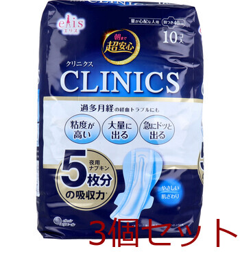 エリス 朝まで超安心 クリニクス 量が心配な人用 羽つき 40cm 10コ入 3セット 送料無料