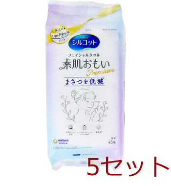 シルコット フェイシャルタオル 素肌おもい プレミアム 45枚入 5セット 送料無料