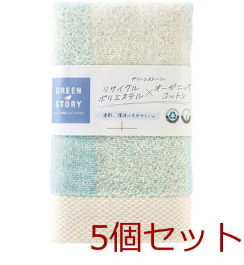 グリーンストーリー 再生ペット×オーガニックコットン フェイスタオル1P R 65FF2 ブルー 5個セット 送料無料