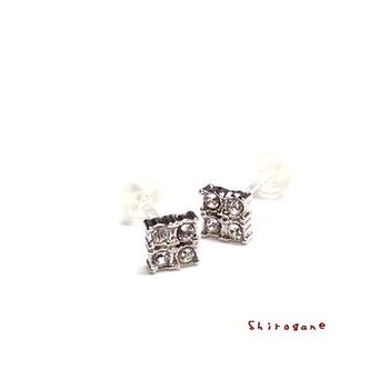 日本製 四角棒ピアス 1ペア 樹脂ポスト 高品質クリスタル使