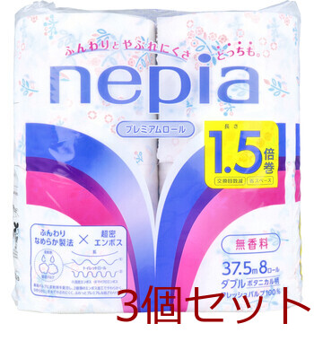 トイレットペーパー ネピア トイレットロール 1.5倍巻 無香料 ボタニカル柄 ダブル 37.5m×8ロール 3個セット 送料無料