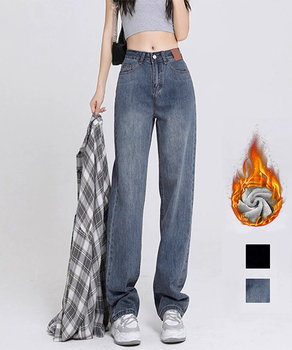 ハイウエストストレートパンツ レディース裏ボアロングパンツ カジュアル 美脚脚長レトロデニム 着やせ あったかパンツ秋冬防風防寒パンツ大人 体型カバーボトムス 裏フリースパンツ女
