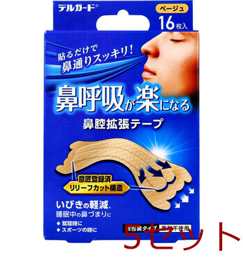 デルガード 鼻呼吸が楽になる 鼻腔拡張テープ 個包装タイプ ベージュ 16枚入 5セット 送料無料