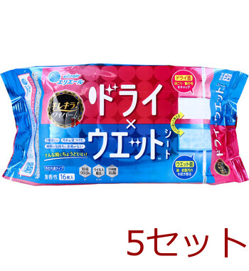 エリエール キレキラ ワイパー ドライ×ウエットシート 各社共通タイプ 無香性 16枚入 5セット 送料無料