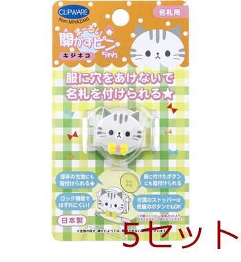 安全ピンの替わりに、名札を服に留めるための製品です。