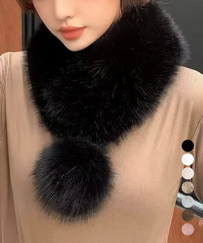 ポンポン付きフェイクファーマフラー暖かい 送料無料 即日発送