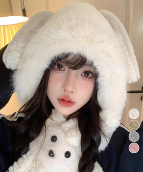 マフラー帽子うさぎ耳 ファー帽子ボア帽子